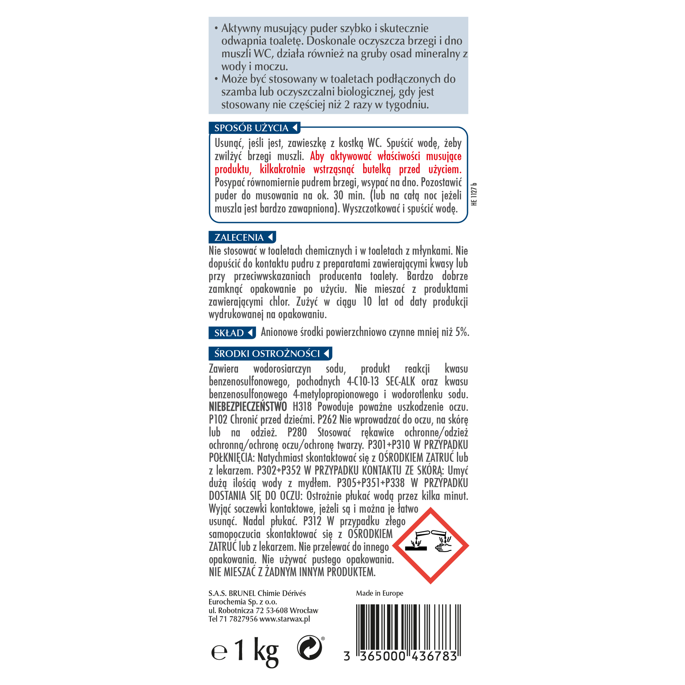 - >Aktywny puder musujący, WC, 1 kg, Starwax