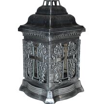 Znicz szklany w plastikowej obudowie kapliczka srebrny 26 cm krzyż ADMIT