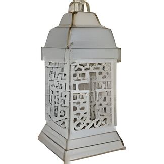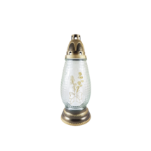 Znicz szklany z krzyżem 32 cm biały pozłacany