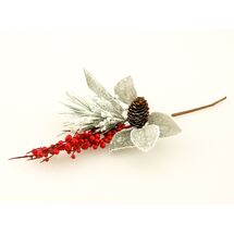 Gałązka ozdobna z jarzębiną i szyszką 28 cm