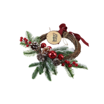 Wianek bożonarodzeniowy z szyszkami jarzębiną i bombkami 30 cm