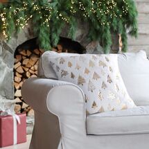 Poszewka świąteczna Joy 45 x 45 cm choinka kremowo-złoty