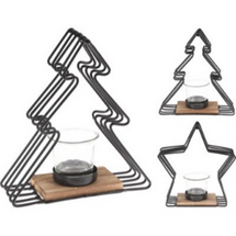 Świecznik metalowy szprosowy z elementami drewna 26 x 26 x 28 czarny