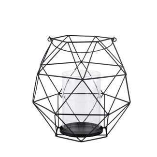 Świecznik metalowy geometryczny z uchwytem i szklanym wkładem 22 x 22 x 22 cm czarny