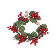 Stroik świąteczny z ośnieżonymi szyszkami i ostrokrzewem 32 cm