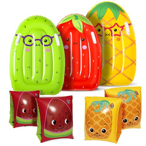 Zestaw deska dmuchana i rękawki owoce Bestway 3-6 lat to praktyczny komplet do pluskania się w wodzie. Rękawki mają wymiary 23 x 15 cm i składają się z 2 komór powietrznych, które pomagają dziecku unosić się i uczyć właściwej techniki pływania. Produkt przeznaczony jest dla dzieci w wieku 3-6 lat. Pompowana deska z uchwytami znajdująca się w zestawie posiada wymiary 84 x 56 cm i dostosowana jest do dzieci w wieku 3-8 lat.