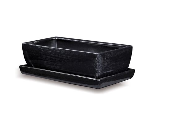 Donica ceramiczna Kaktusiarka Kwadrat Mały z podstawką J1432 29,5 x 13,5 cm czarny ze srebrem