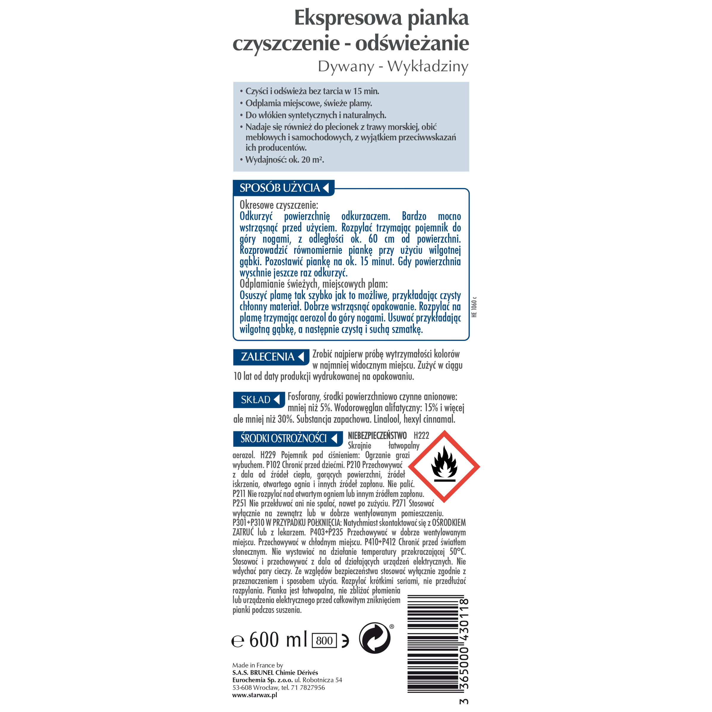 - Ekspresowa pianka, czyszczenie & odświeżanie, dywany 600 ml Starwax