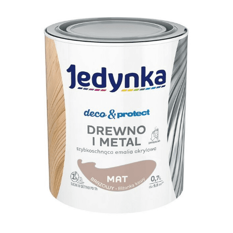 - >Farba akrylowa Jedynka Deco&Protect Drewno i Metal mat Brązowy 0,7 l