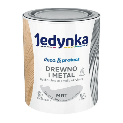 - >Farba akrylowa Jedynka Deco&Protect Drewno i Metal mat Szary Jasny 0,7 l