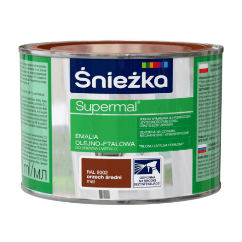 - >Farba emaliowa olejno-ftalowa Supermal mat orzech średni 0,8 l Śnieżka