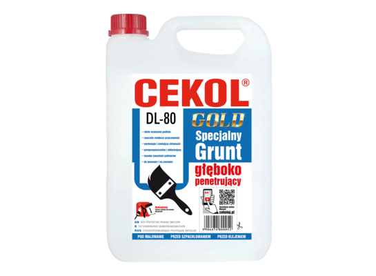 Emulsja CEKOL DL-80 jest nietoksyczna i niepalna. Nie zawiera rozpuszczalników organicznych. Wzmacnia podłoża, uszczelnia je, zwiększa przyczepność do podłoża szpachlówek, zapraw klejących i wylewek. Zapobiega szkodliwym reakcjom chemicznym między gipsem, a cementem. Przy wylewkach samopoziomujących zapobiega zbyt szybkiemu wchłanianiu wody przez podłoże, poprawiając rozpływność i ograniczając tworzenie się pęcherzyków. Przy tynkowaniu i szpachlowaniu CEKOL DL-80 poprawia równomierność wiązania nakładanych zapraw. Gruntowanie powierzchni tynku ułatwia malowanie. Po wyschnięciu, na podłożu powstaje przezroczysta, lekko błyszcząca, powłoka odporna na działanie wody i czynników alkalicznych, która nie hamuje wymiany pary wodnej i gazów z otoczeniem.
