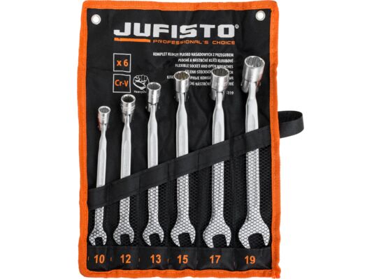 Klucz płasko-nasadowy przegubowy 10-19 mm zestaw 6 sztuk Jufisto