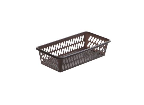 Koszyk plastikowy ma ażurowe ścianki, które zapewniają wentylację zawartości, dzięki czemu umieszczone w nim rzeczy nie wilgotnieją. Jest on niezastąpiony przy organizacji i przechowywaniu różnych drobiazgów. Umieścisz w nim przyprawy, kosmetyki, akcesoria dziecięce, leki czy artykuły papiernicze. Świetnie sprawdzi się więc w kuchni i spiżarni, w pokoju dziecka, gabinecie, garderobie i łazience. Owalne, gęsto rozmieszczone otwory w bocznych ściankach dodają mu dekoracyjności, dlatego koszyk plastikowy efektownie zaprezentuje się na półce w różnych widocznych miejscach.