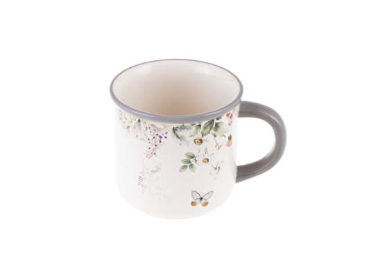 Kubek ceramiczny z motywem kwiatowym 400 ml biało-szary
