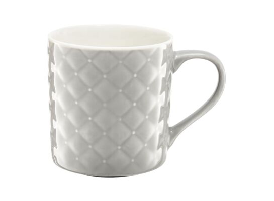 Oryginalne kubki porcelanowe z charakterystycznym tłoczeniem w kształcie pikowania. Pojemność 420 ml.
