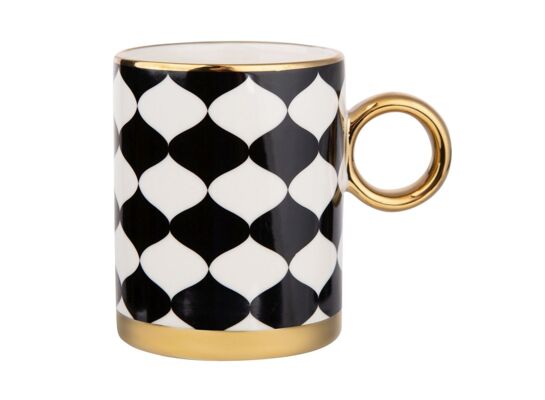 Kubek wysoki 350 ml ze złotym uchem czarno- biały