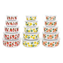 Pojemniki emaliowane z pokrywką owoce 10 cm + 12 cm + 14 cm + 16 cm + 18 cm mix kolorów