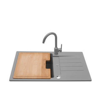 Zlewozmywak FOX z baterią szary 77 x 45 x 17 cm deska w komplecie