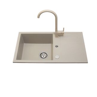 Zlewozmywak granitowy BARBADOS 1k z 1/2oc. 44 x 65 cm z syfonem beż