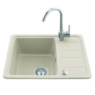 Zlewozmywak 1-komorowy LEMON 57 x 45 piaskowy z baterią