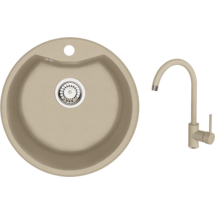 Zlewozmywak granitowy Solis piaskowy Ø48 cm z baterią Deante