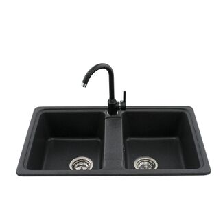 Zlewozmywak granitowy 2-komorowy LEMON z baterią grafit