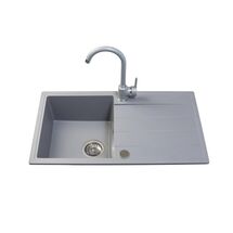 Zlewozmywak granitowy BARBADOS 1 komora z ociekaczem 44 x 76 cm z syfonem i baterią szary