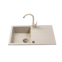 Zlewozmywak granitowy Lagoon 76 x 43,5 cm beżowy z baterią chromowaną Doris