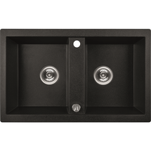 Zlewozmywak granitowy 2-komorowy Barbados 48 x 78 cm z syfonem czarny