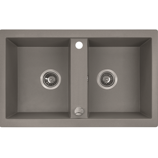 Zlewozmywak granitowy 2-komorowy Barbados 48 x 78 cm z syfonem szary