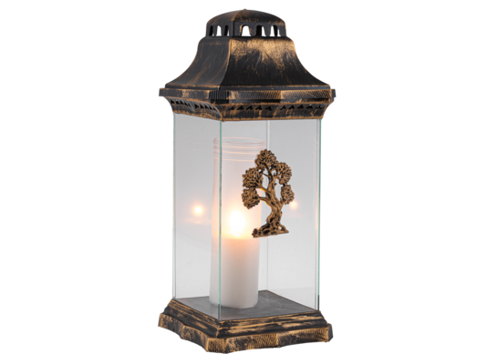 Lampion szklany z aplikacją drzewa 39 cm złoty
