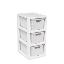 Regał z koszykami rattan BQ-1725 3 x 7 l biały antyczny