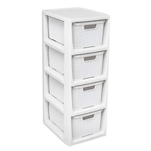 Regał z koszykami rattan BQ-1726 4 x 7 l biały antyczny