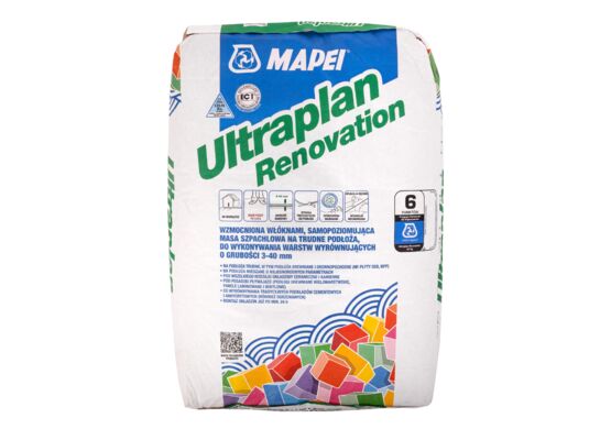 - ZastosowanieUltraplan Renovation jest cementową, samopoziomującą masą szpachlową zbrojoną włóknami, przeznaczoną do wyrównywania i wygładzania nowych i istniejących już podkładów, nakładaną w warstwach o grubości od 3 do 40 mm.