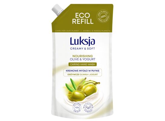 Kremowe mydło w płynie Luksja Creamy & Soft Oliwka i Jogurt zawiera środki myjące naturalnego pochodzenia. Skutecznie oczyszcza skórę, zapewniając jej pielęgnację i natychmiastową miękkość. Pozostawia na dłoniach subtelny zapach.