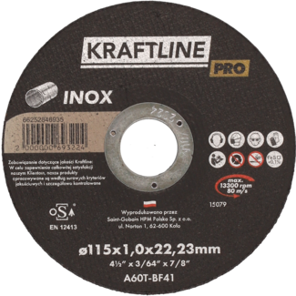 Tarcza do cięcia T41 115 x 2 x 22,23 mm inox KRAFTLINE PRO