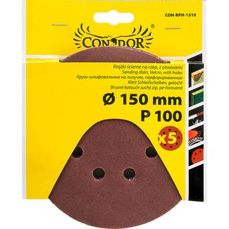 Krążek ścierny na rzep z otworami 150 mm P 100 zestaw 5 szt. Drel