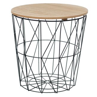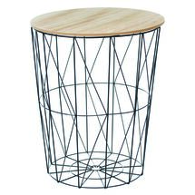 Stolik z koszem z drewnianym blatem 40 x 41 cm