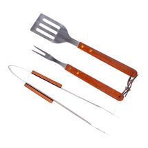 Sztućce do grilla komplet 3-częściowy stal z drewnianymi uchwytami Activa