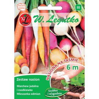 Nasiona na taśmie zestaw: pietruszka korzeniowa Halblange Berlińska i rzodkiewka wielobarwna o zgrubieniach walcowatych W.Legutko