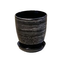 Doniczka Classic wysoka 13,5 cm ceramiczna grafitowo-srebrna z podstawką
