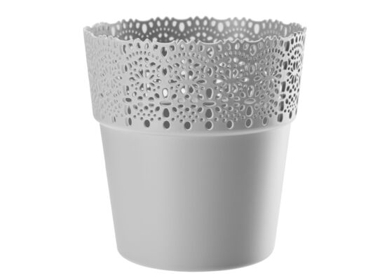 Osłonka BELLA posiada ozdobny rant z ażurowym wzorem koronki oraz satynową powierzchnię. Rozmiary zostały dopasowane do najbardziej popularnych doniczek produkcyjnych. Delikatne i kobiece dodatki w pastelowych kolorach nadadzą wnętrzu romantycznego i łagodnego charakteru. Mogą służyć nie tylko jako osłonka dla roślin, ale również jako pojemnik na drobiazgi w pokoju dziecięcym, łazience czy kuchni.