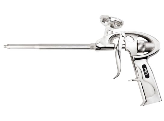 Pistolet do pianki montażowej NEO (nr ref. 61-012) głowica z mechanizmem teflonowej kulki oraz igła ze stali nierdzewnej pokryta teflonem zapobiegają wyciekom podczas pracy. Masywny uchwyt z pokrętłem umożliwiający zmianę ciśnienia jedną ręką zapewnia wygodę podczas użytkowania. Obudowa ze stopu aluminium pokryta niklem zapewnia długą żywotność narzędzia. Marka NEO spełnia oczekiwania profesjonalistów.