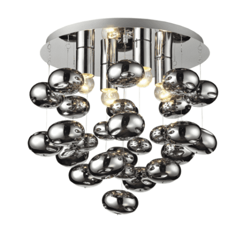 Plafon Tivoli 4 to udane połączenie szkła i metalu o błyszczącej powierzchni oraz lampa, z której zwisają zjawiskowe bombki. Światło efektownie się od nich odbija i zdobi pomieszczenie. Ten wyjątkowy plafon pasuje do nowoczesnych aranżacji i reprezentacyjnych wnętrz. Jednocześnie zachwycisz się jego wykonaniem - jest dopracowany w każdym detalu i będzie cieszyć Cię swoją funkcjonalnością mimo upływu czasu.
