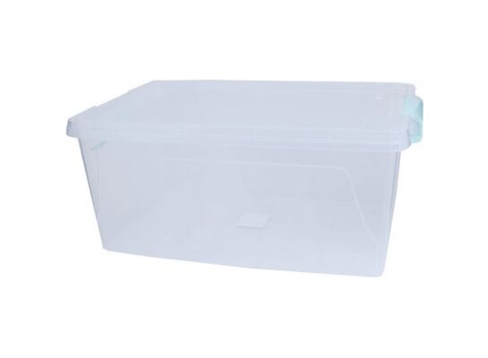 Pokrywa została zrobiona z plastiku i jest dobrze dopasowana do krawędzi. Natomiast stabilność i szczelne zamknięcie zapewniają dwa miętowe klipsy. W celu zamknięcia wystarczy jedynie je obrócić i umieścić we wgłębieniach pokrywki, a wszelkie przedmioty będą zabezpieczone. Dzięki temu zawartość nie rozsypie się, nie będzie też narażona na zamoczenie czy zniszczenie. Pojemnik plastikowy świetnie nada się do przechowywania dziecięcych zabawek, sezonowych ozdób czy samochodowych akcesoriów.