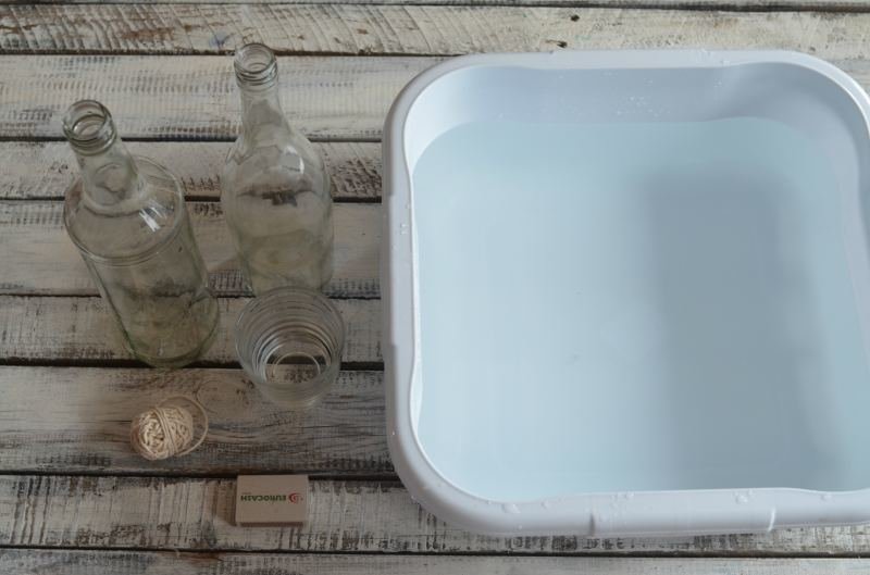 1. Owijamy butelkę sznurkiem kilka razy, w miejscu gdzie chcemy ją przeciąć. Mocno zawiązujemy sznuek.