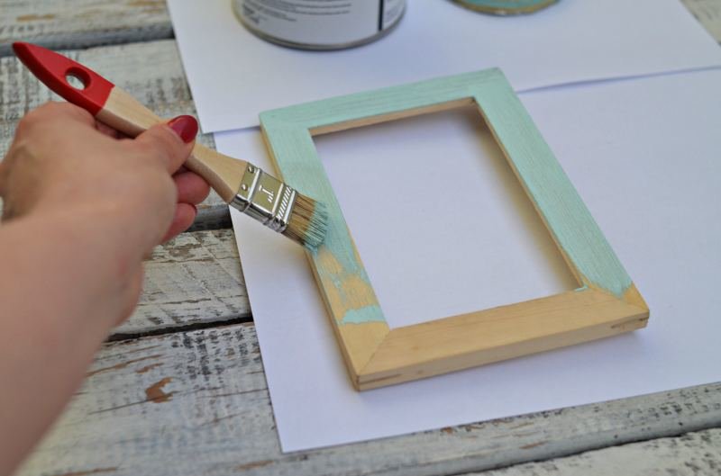 Do malowania ramek używamy farby akrylowej lub kredowej. Ta druga nie wymaga przygotowania powierzchni. Ramki malujemy z dwóch stron, nawet do trzech razy – wszystko zależy od efektu, jaki chcesz uzyskać.