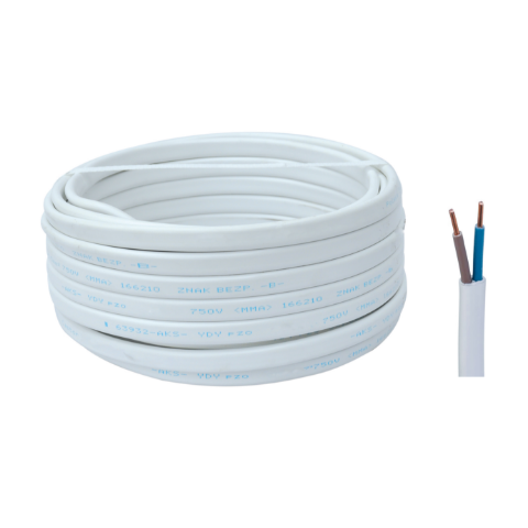 Przewód YDYP 750 V, 2 x 2,5 15 mb biały AKS Zielonka