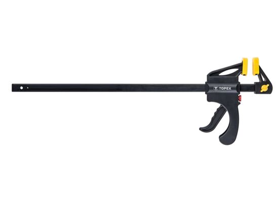 Ścisk automatyczny TOPEX (numer referencyjny 12A545) jest uniwersalnym ściskiem, z możliwością zastosowania jako klamra, rozpórka i inne. Przydatny zarówno podczas prac profesjonalnych, jak i drobnych remontowo-budowlanych. Uchwyt pistoletowy wykonany z tworzywa sztucznego wysokiej jakości, wyprofilowany dla większej wygody użytkowania. Dodatkowo wyposażony w system szybkiego przesuwu, co ułatwia pracę narzędziem. Certyfikaty TÜV, GS są gwarantem niezawodności produktu. Marka TOPEX skierowana jest do majsterkowiczów.